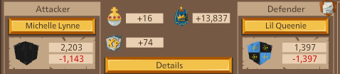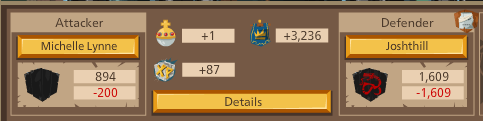 You're welcome. English is a beautiful language, is it not? It looks much better when it is intelligible. Anyway, not gonna waste time on this anymore unless I see something especially stupid-looking. Actually, I take that back. I don't want to waste time every time one of you guys posts..... Now that y'all have made it a RV war, I'll get back to paying attention to the game. See y'all!Michelle Lynne (US1) said:Oh, no-one had a heads up. How cute. You guys declared over a fair glory attack. I sent a peace request that you guys thought was OK to accept after you massed Dylan for ONE attack. Someone took out 4k troops? Wow, that is amazing because myself, in the couple hours that I sent attacks, took out way more than I lost. I didn't even loose enough troops for one full attack. Not to mention half the attacks I sent were all ranged troops with no tools, and I still won and lost almost nothing. So those 4k troops someone killed of ours, big effing deal. You guys planning on sending any real attacks, or not opening your gates or fire casting? Oh no, you'll just start sending attacks when you think everyone is sleeping so you can kill another 4k troops. Because I am sure that is the only way you managed to kill the 4k you did, not to mention you're not even defending against lower level players who definitely have no war experience. That makes this even funnier. Also, we won't be sending a peace request. Hope you enjoy becoming my players farms.