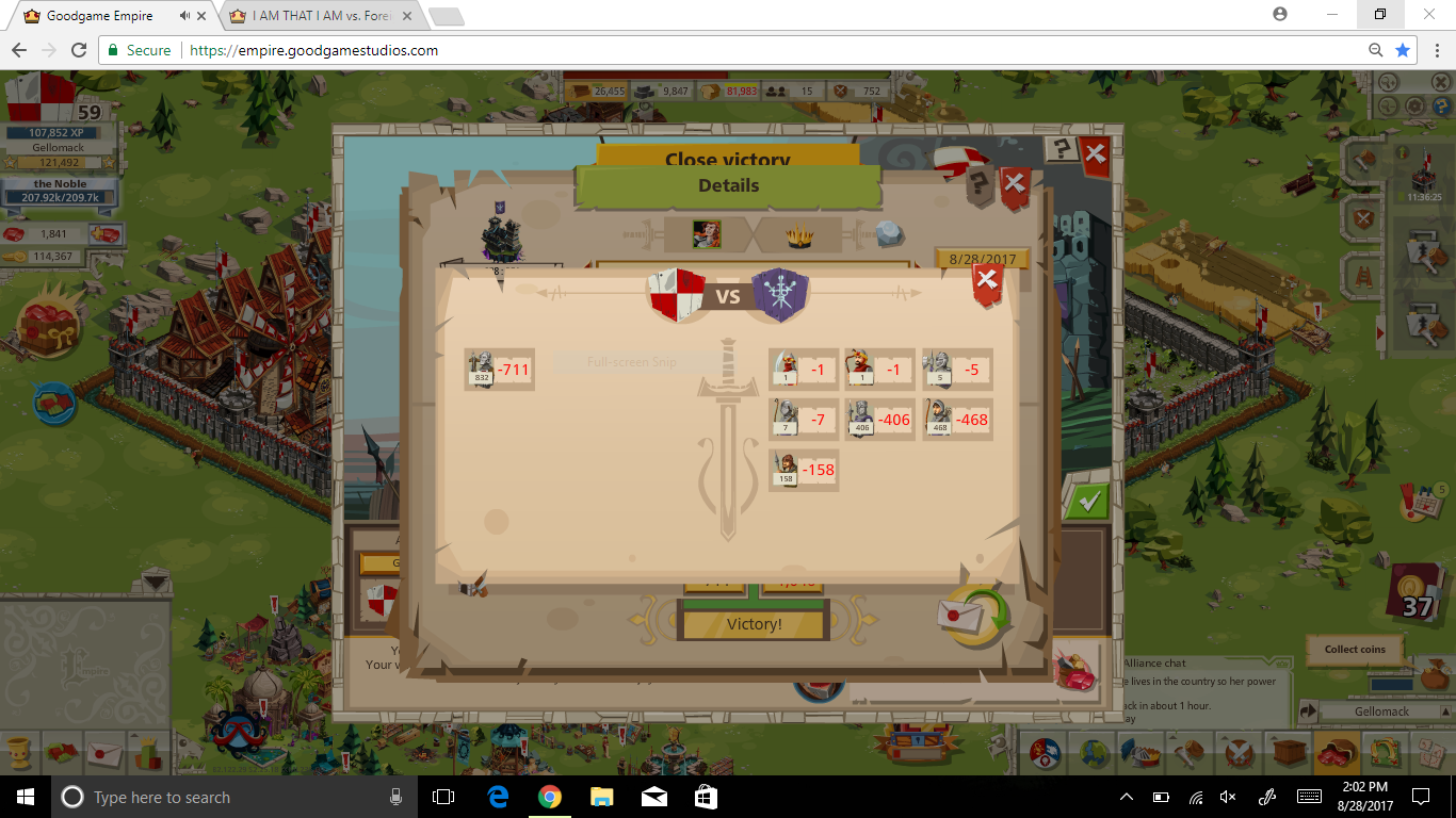 Gellomack vs. Foreign Lord....1040 Crossbowmen of the Kingsguard 81R+6 Commander vs. 1218 Vet Defense and Kingsguard defense..90/90 cast...
