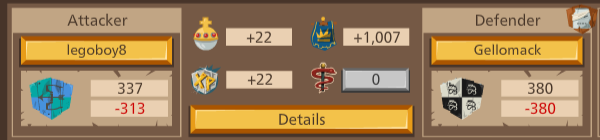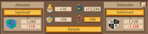 the wall was all ranged w/ all ranged tools. the cy was all or mostly kingsguard i forget. my com had 72cy thojordons empire (US1) said:If no one answered you, The def could've also been all range troops & range tools. If nullied by mants/SW's you would win the wall with a single troop. but most likely was offensive troops because of the losses in the CY, Normally 740 def would kill more than 119 troops.The Pacifist (US1) said:Did he have all attackers in his main? How'd he not kill a single troop on the wall?legoboy8 (US1) said: