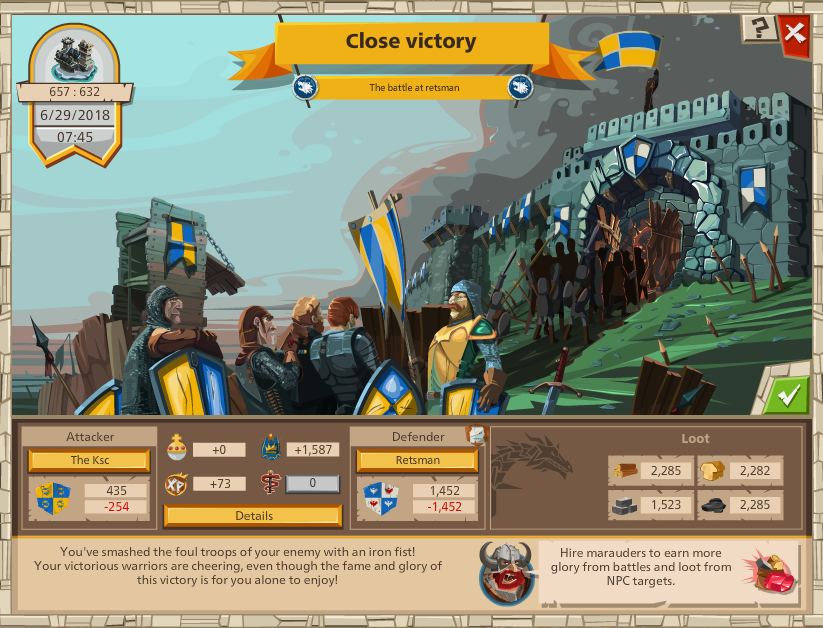 its so obviously boosted. just look at the last hit. even just clearing decent attackers with no glory bonus at all would get more than 1.2 glory per troop. its literally just all macemen or wolves. nice try budantoinecm (FR1) said:A little noob with a hall of legends in defensive mode ...