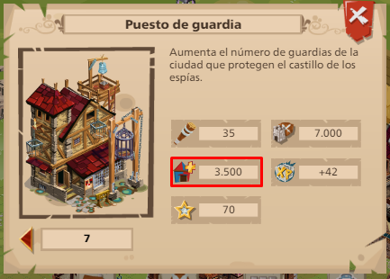Además del limite del patio, solo podremos usar una cantidad fija de unidades que nos envíen nuestros hermanos de armas, y los edificios que de momento aumentan ese limite son el torreón, la fortificación y los puestos de guardia (Sigue el intento de mejorar estos dos últimos edificios)