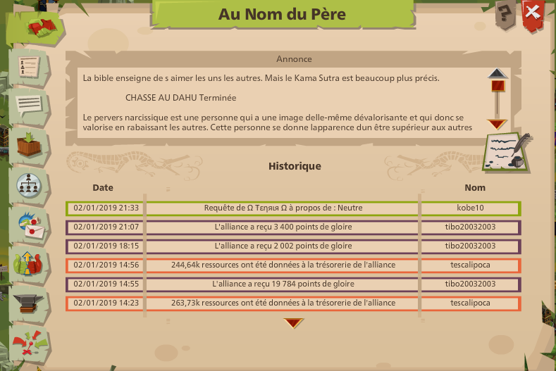 Avec une telle mentalité, en effet comme apprendre aux joueurs qu'on s'acharne pas sur ses voisins.... Disons qu'il a eu bonne école ! Tout le monde aura compris qu'on ne s'aime pas, tout le monde aura aussi compris que cette mauvaise image de Tibo n'est que le reflet de la mentalité générale de l'alliance...