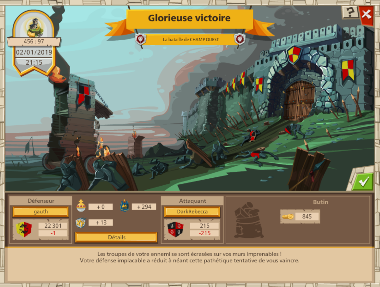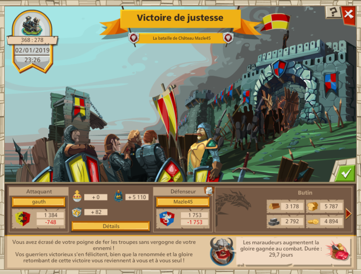 9) 03.01.2018, soir, ~22h45 : Raid de Rufus22 et zig1 sur Jehan de Noël4 et simo53 sur cp et aps. Victoire globale des Sangs Coeurs.