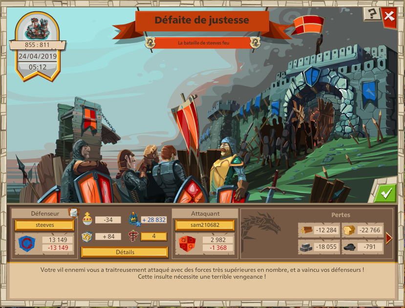 Tu me crois ou pas, le rouge n'a rien à voir avec votre raid contre shaolin, ce sont des grands garçons et filles (à part leur diplo qui me parait un peu jeune, mais bon) mais plus à ce que je avais résumé et à certaines inimitiés, qui font que même sans guerre il y a des petits asticotages, genre tu prends 4 offs, je t'envoie 30 sabotages, je te fais un mp avec des noms d'oiseaux, tu m'insultes IRL.... Tu as raison sur un point ce n'est pas complètement du hasard, mais rien à voir avec les shaolin.