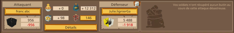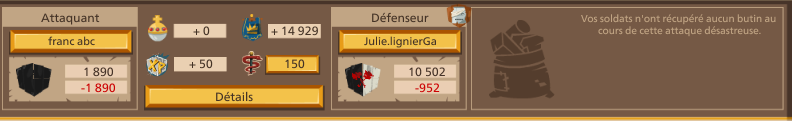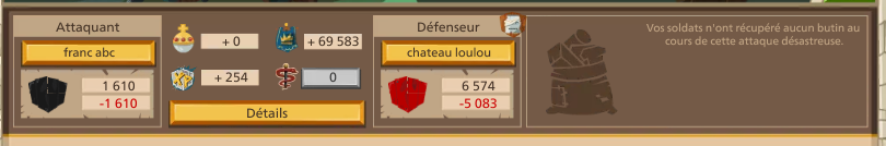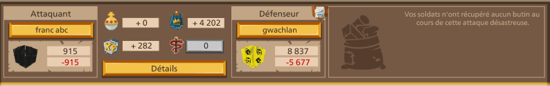 Hier soir une nouvelle bataille acharnée s'est déroulée, malgré la stratégie et le courage de mes troupes face à un ennemi bien supérieur en nombre de nombreux braves soldats ont succombés à leurs blessures.
