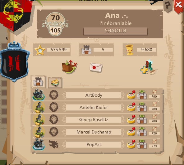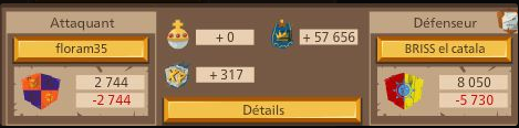 Et bah qu'il mette des defs dans ses vars '-'BRISS el catala (FR1) a dit :une attaque PE , ben t'enleves tes engins et les loups se crachent sur le murs sans perte ! un vol de var est a mon sens beaucoup plus grave car tu prives le joueur de ressources et donc pas conséquence toute la mécanique du jeu ! ou est l’égalité la dedans ? il me semble que shaolin a l'origine est une caste qui respirait la loyauté le respect ! visiblement c'est pas la politique ici ! la honte