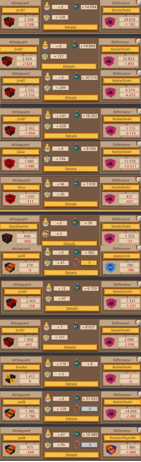 Merci à toi, non l'objectif n'est pas de détruire leur alliance je n'est pas la prétention de dire que nous le pouvons. C'est une belle guerre pour le moment il on fait appel a leur protecteur alors que NobleOtokh disait hier qu'ils avaient l'avantage et qu'il valait mieux regler sa en 1v1 pour épargner notre alliance. J'ai l'impression que son discours a changer si ils ont fait appel a leur protecteurfortané (FR1) a dit :Bonjour,jael8 (FR1) a dit :déjà 6 départ de leur coté il était 38 au début de la guerre les voilà plus que 32