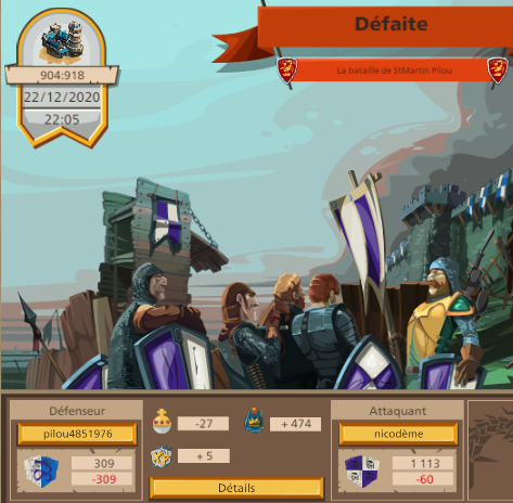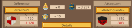 -Prix du courage : Nicodème, pour sa bravoure face à un château dont certaines tours sont encore au niveau 1/2, sur une joueuse deux fois "moins puissante" sur le plan des pps et du niveau. Félicitations Nicodème !