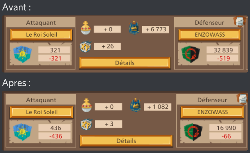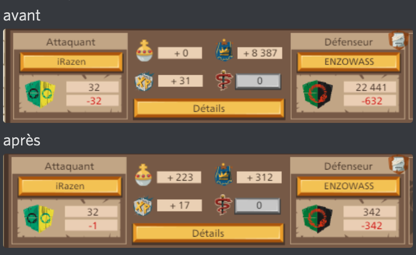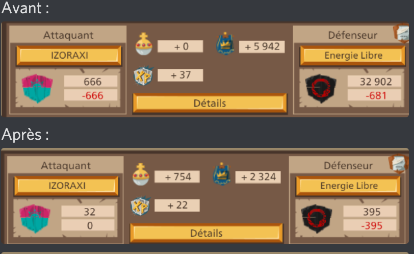 Je n'arrête pas de le dire à ce cher Saskue ^^ninja vert (FR1) a dit :Jolis RC, je pense que ça serait mieux de séparer vos attaques et vos défenses pour qu'on puisse bien voir.