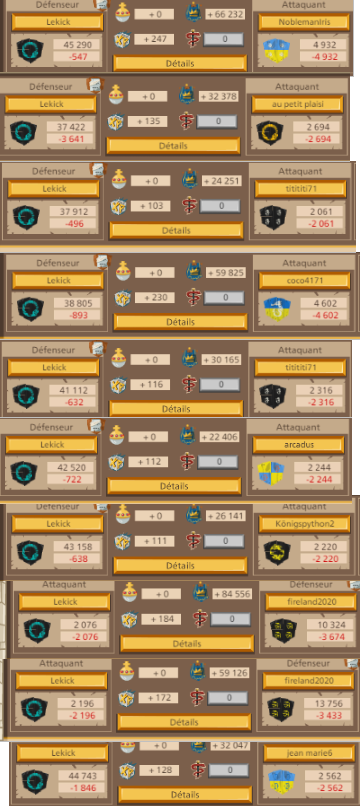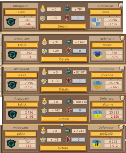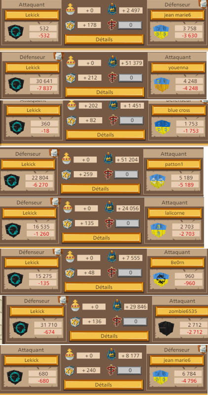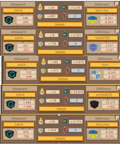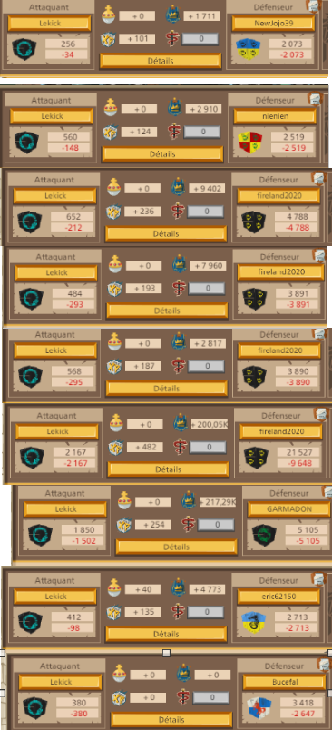 Tous ceux qui veulent lui déclarer la guerre allez y , ce gars là na pas sa place dans le jeu, il ne joue pas il détruit et écoeure les petits, il n'a aucun respect, le pire il est allé pleurer chez GGE en disant qu'il était insulté et autres aneries, donc GGE a bloqué un de nos joueurs soit disant qu'il l'aurai traité de lache ! La définition de lache sur le dictionnaire n'est pas une insulte, juste une dure réalité pour Lekick : "(PERSONNES) Qui manque de vigueur morale, de courage, qui recule devant le danger. ➙ pusillanime ; peureux. — nom ➙ FAMILIER dégonflé.