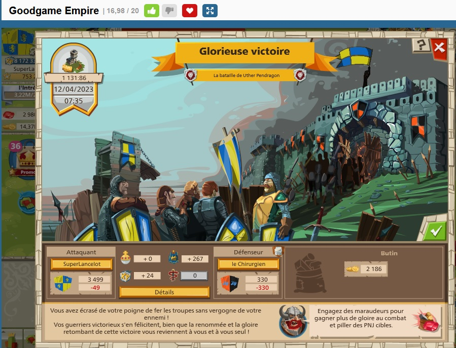 Les autres joueurs seront juges, un gars qui n'a que des CP, aucun Avp et aucun Var n'est pas un joueur, juste un destructeur qui ne mérite pas sa place sur un jeu, et c'est ta CB qui te sauve, et ça arrange bien les affaires de GGE, ils sont d'ailleurs côtés en bourse grâce à des payeurs comme toi. Il y a des personnes qui n'arrivent pas à manger à la fin du mois, et toi tu balances l'argent par la fenêtre ! Tant mieux si tu as les moyens, certains autres joueurs ont d'autres priorités.