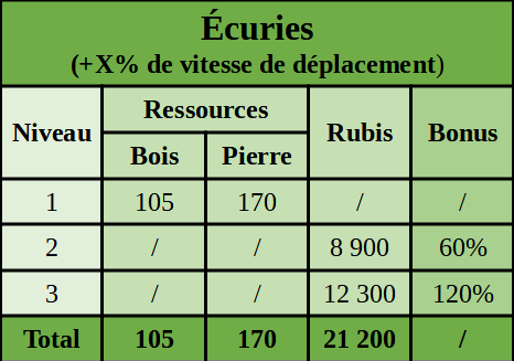 Egalement, voici les prix des écuries: