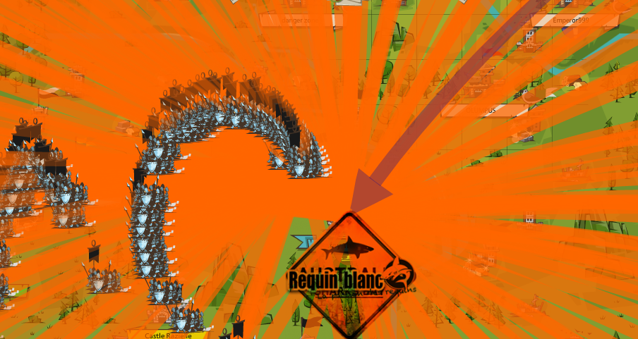 je souhaiterais avoir une signature où l'on voit un chateau d'ou partent plein d'attaque avec REQUINS BLANCS érit au dessus,