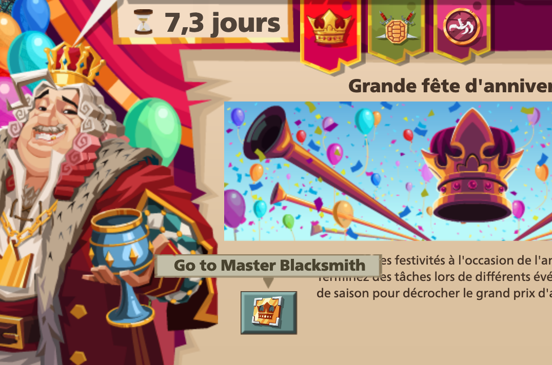 Dans le menu du festival, lorsqu'on place le curseur sur l'icône où il y a la tablette d'anniversaire, le texte affiché est en anglais.