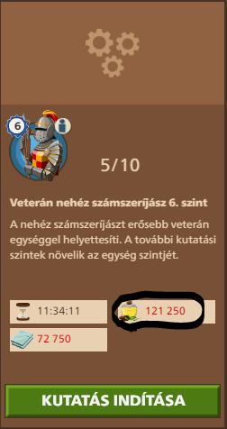 Van egy elem hozzá, kutató torony kutatási költségeket csökkenti. Azzal ki lehet húzni 8-asig. (Ha van 8. szintű raktárad).