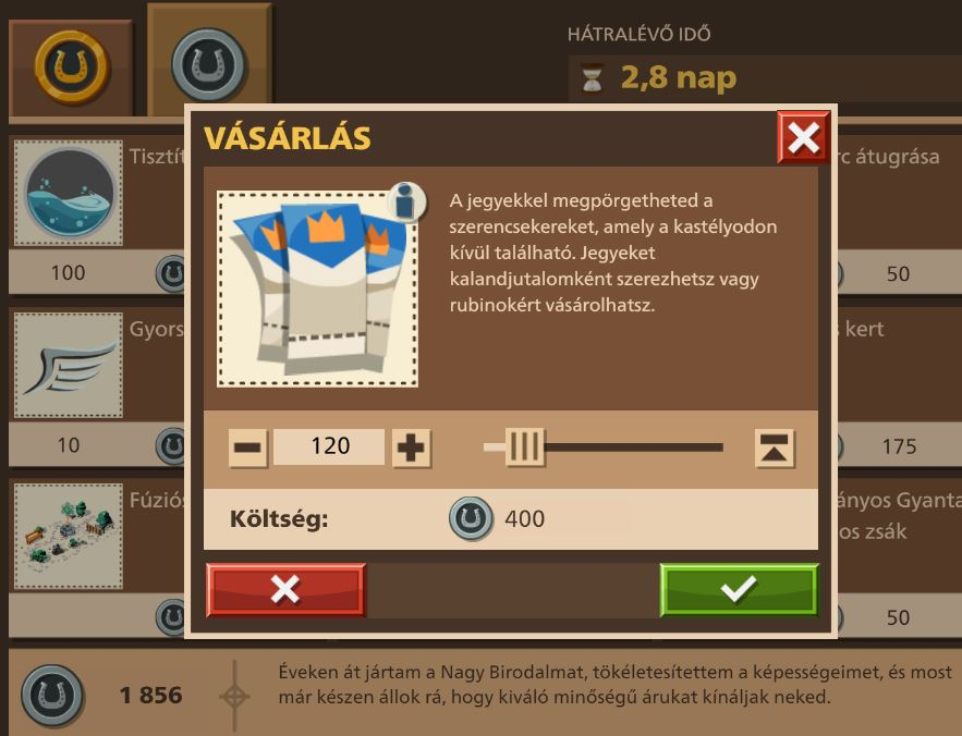 Az event elején az ezüst patkókat átváltottam jegyre persze amikor beléptem a kerékbe, hogy elpörgessem nem adta meg 3500-nyi jegyem a semmibe ment. Jeleztem már a supportnak, mire azt a választ kaptam, ha nem költöttem erre a tevékenységre akkor nem tudnak vele mit kezdeni.