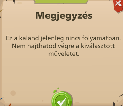 Ezt írja: ez a kaland jelenleg nincs folyamatban. (Mellékeltem a screen-shot-ot is
