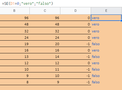 Partendo dalla colonna [E] , viene detto in poche parole che [D] è vero se = 0, altrimenti è falso.