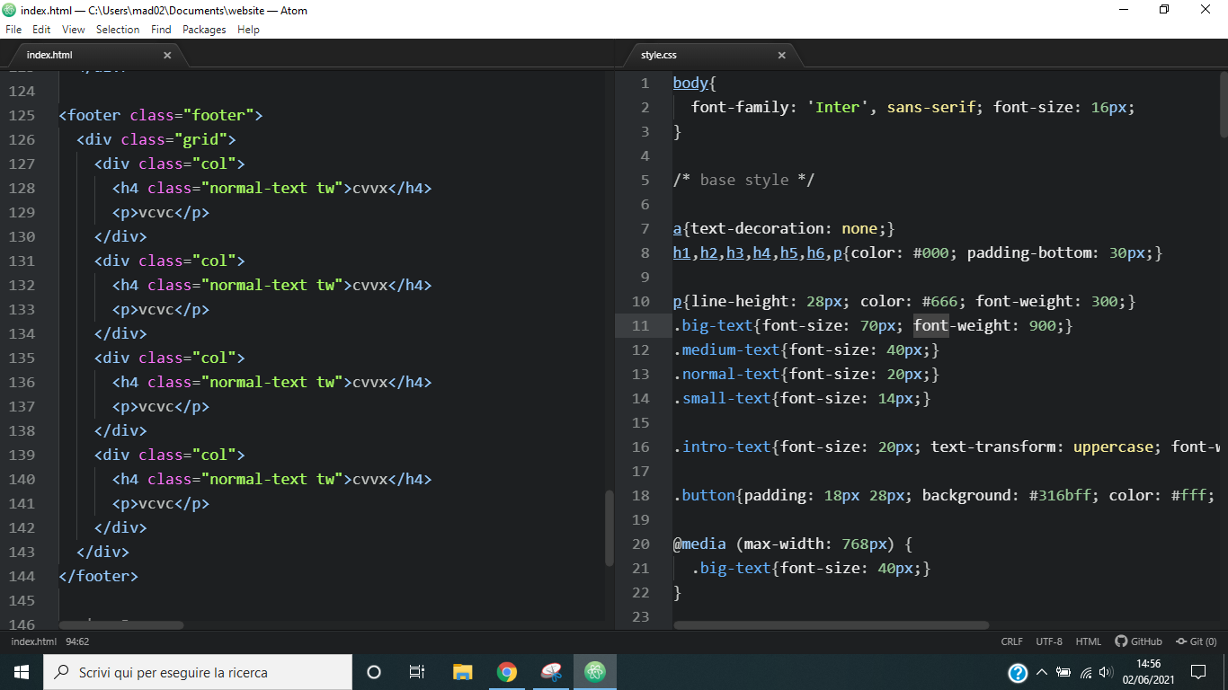 [ html serve per creare la struttura della pagina.