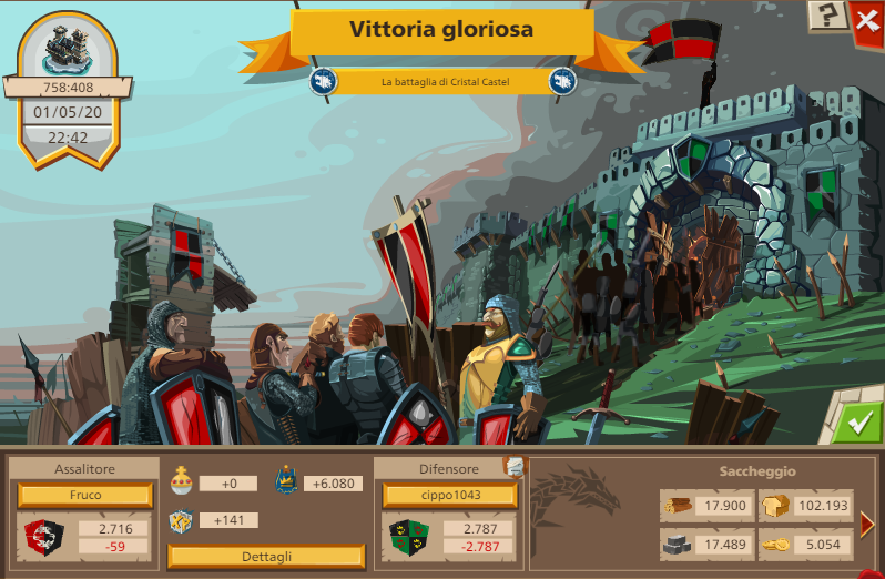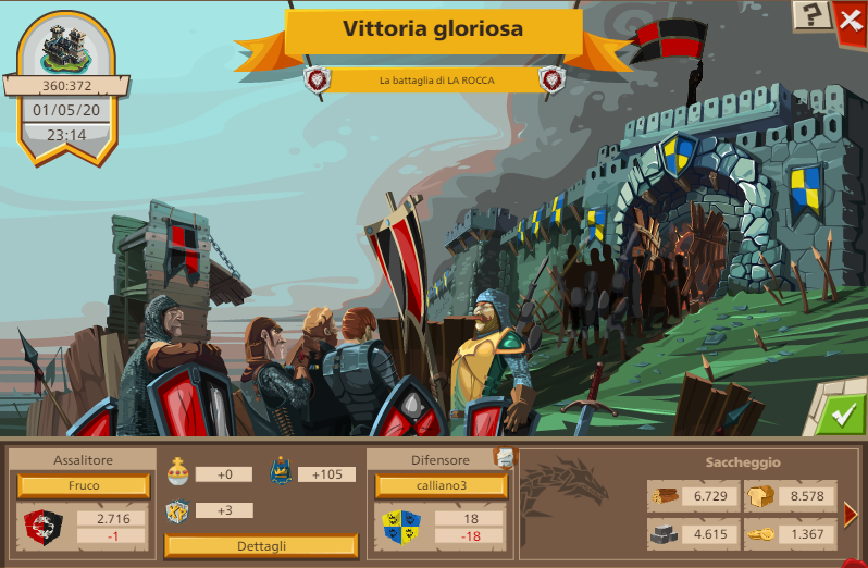 Dici che vi abbiamo attaccato di sorpresa e che siete caduti perchè presi alla sprovvista, però a me sembra di vedere anche un tuo attacco che è impattato 10 minuti prima dei nostri, come mai?calliano3 (IT1) ha detto:buon giorno volevo scrivere la mia, guerra e guerra e per me prima volta di una guerra mi sono divertito ma devo recriminare una cosa il regno a tradimento e dopo mesi di preparazione e con aiuti esterni molto potenti attacca i black ,noi nn sapevamo nulla di cio' e quindi presi alla sprovvista siamo caduti, unico modo per il regno di poter sopraffare i black, attacchi a player oramai finiti con 18 militi attaccati con piu di 2000 e in serie impareremo la lezione e dico al regno arrivederci, quando arriveremo ci comporteremo in egual misura nn faremo i black di rango elevato, ma ci comporteremo da regno nn so che parole usare tanto e di fogna profonda il loro comportamento vi cancelleremo dalla mappa . regno style.......Vedremo poi le vostre opinioni