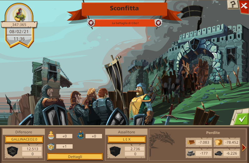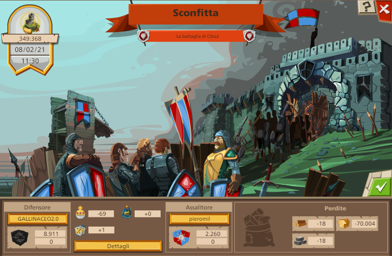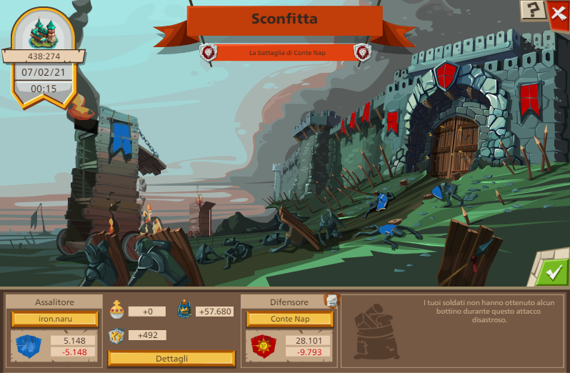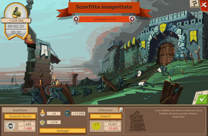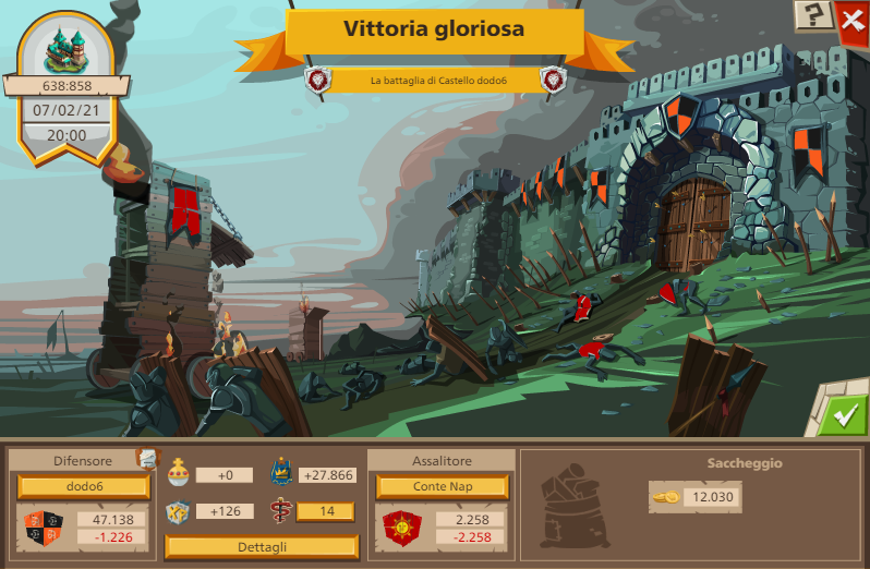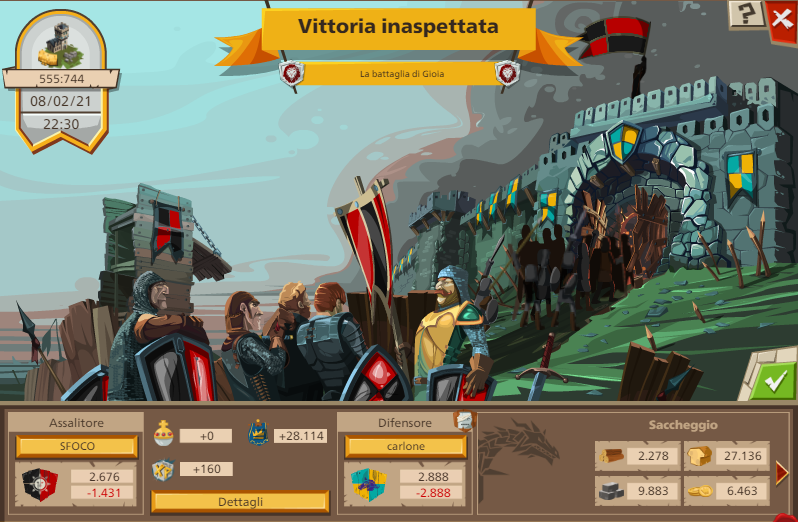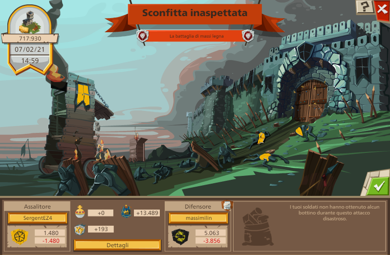 Il tentativo di arrosto riesce solo parzialmente, con 21 dei 28 full murati, perdiamo 44441 difensori a fronte di 53150 attaccanti uccisi. Bravo gallino, però le torri le devi potenziare lo stesso