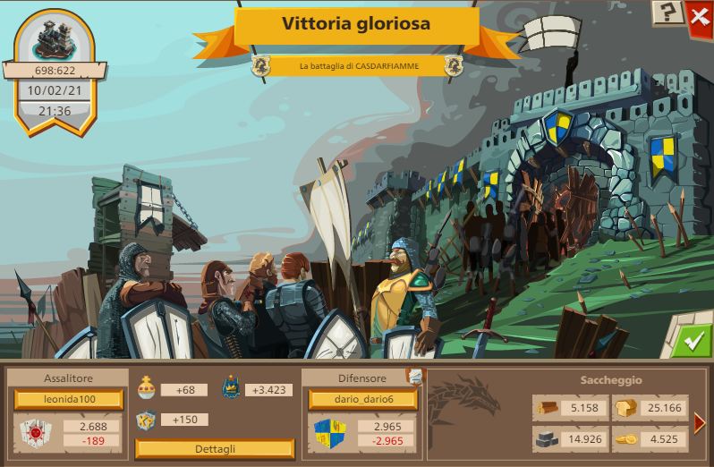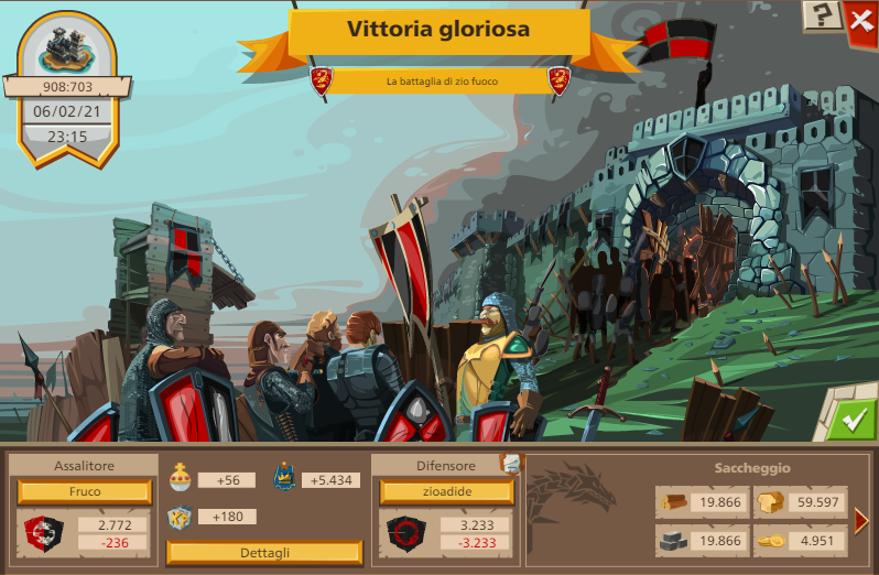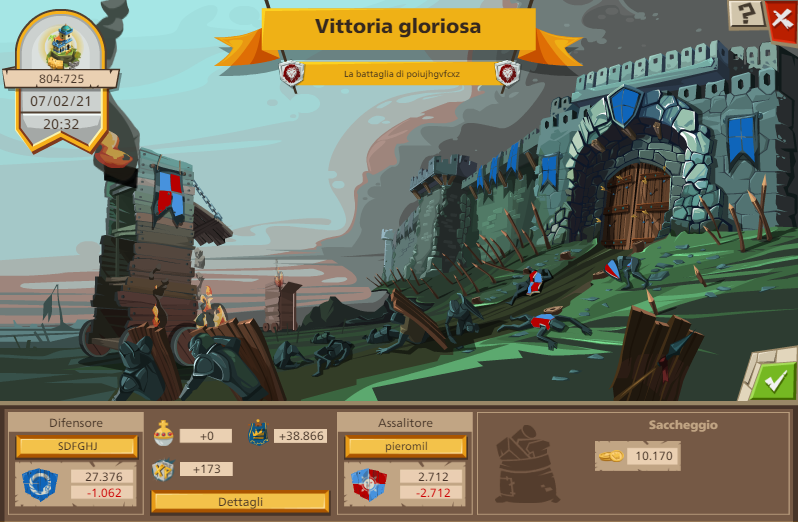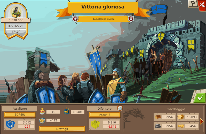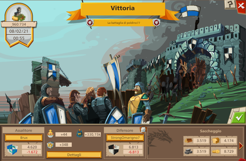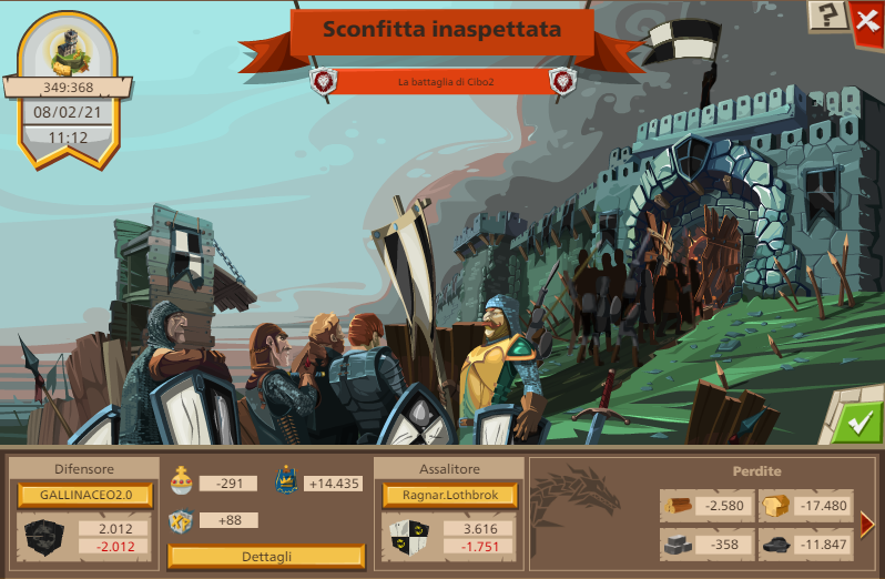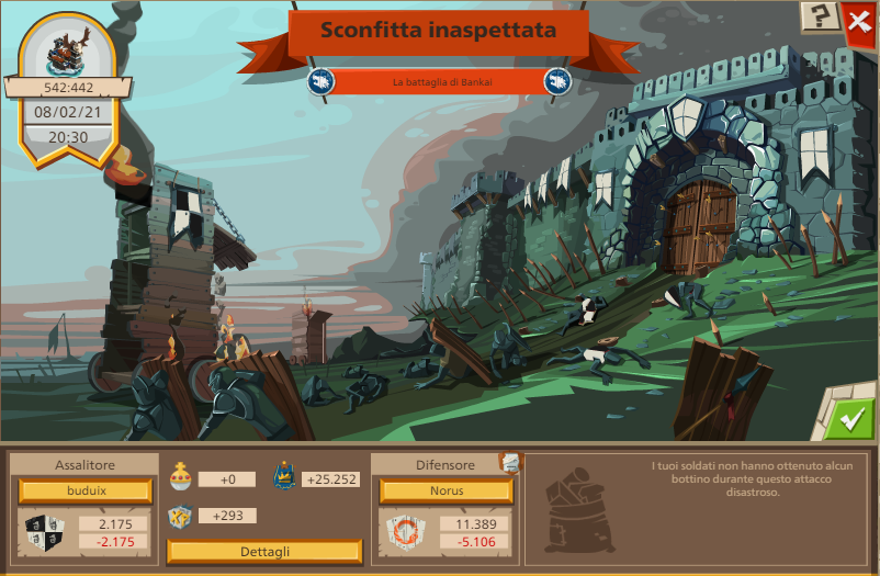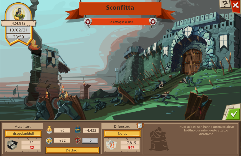 Il tentativo di arrosto riesce solo parzialmente, con 21 dei 28 full murati, perdiamo 44441 difensori a fronte di 53150 attaccanti uccisi. Bravo gallino, però le torri le devi potenziare lo stesso