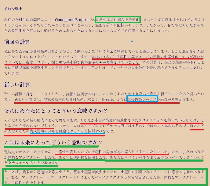 しかし今後は「建物のアップグレード」等、生産性に関わる建物に変更があった場合、出来る限りチェックすることをお勧めします。