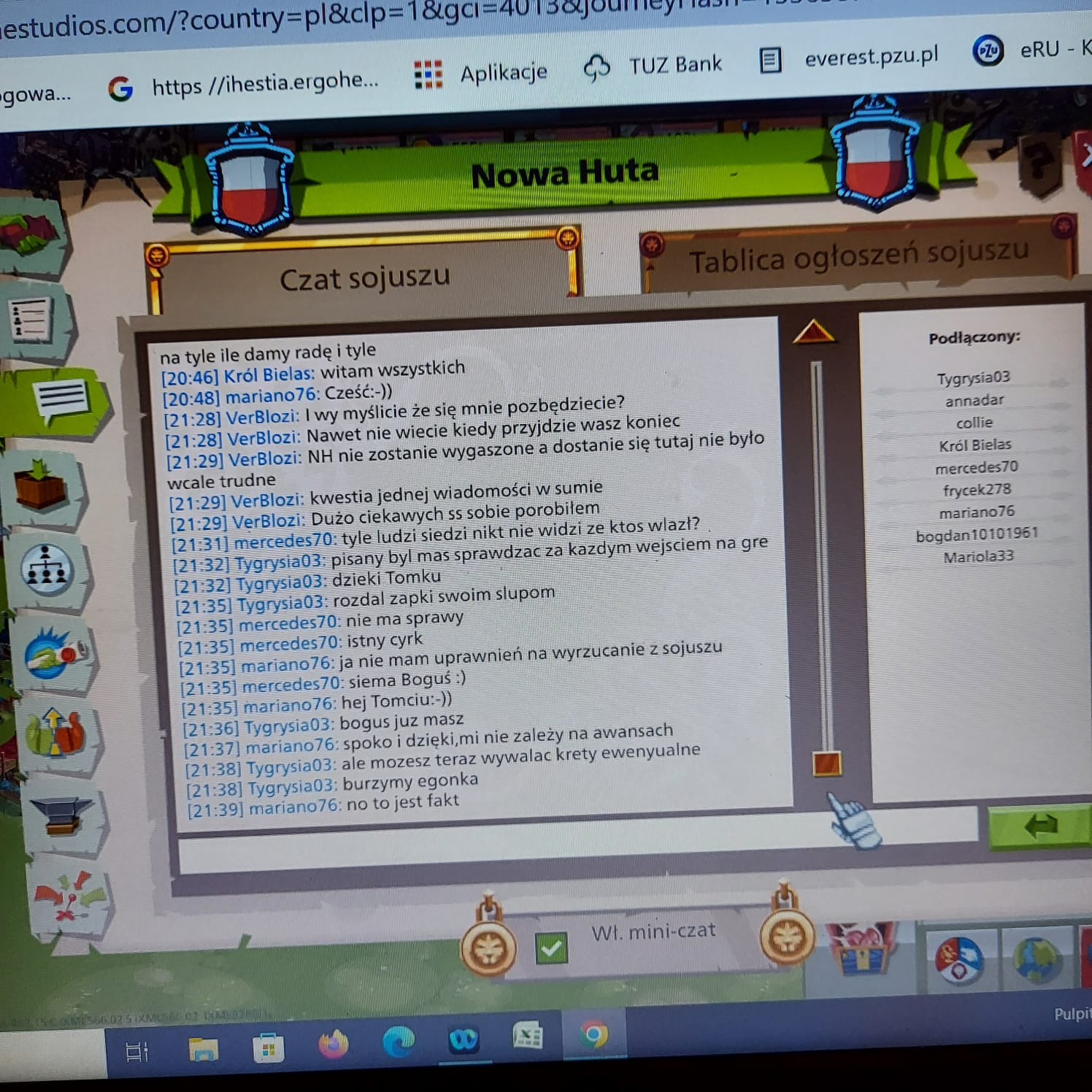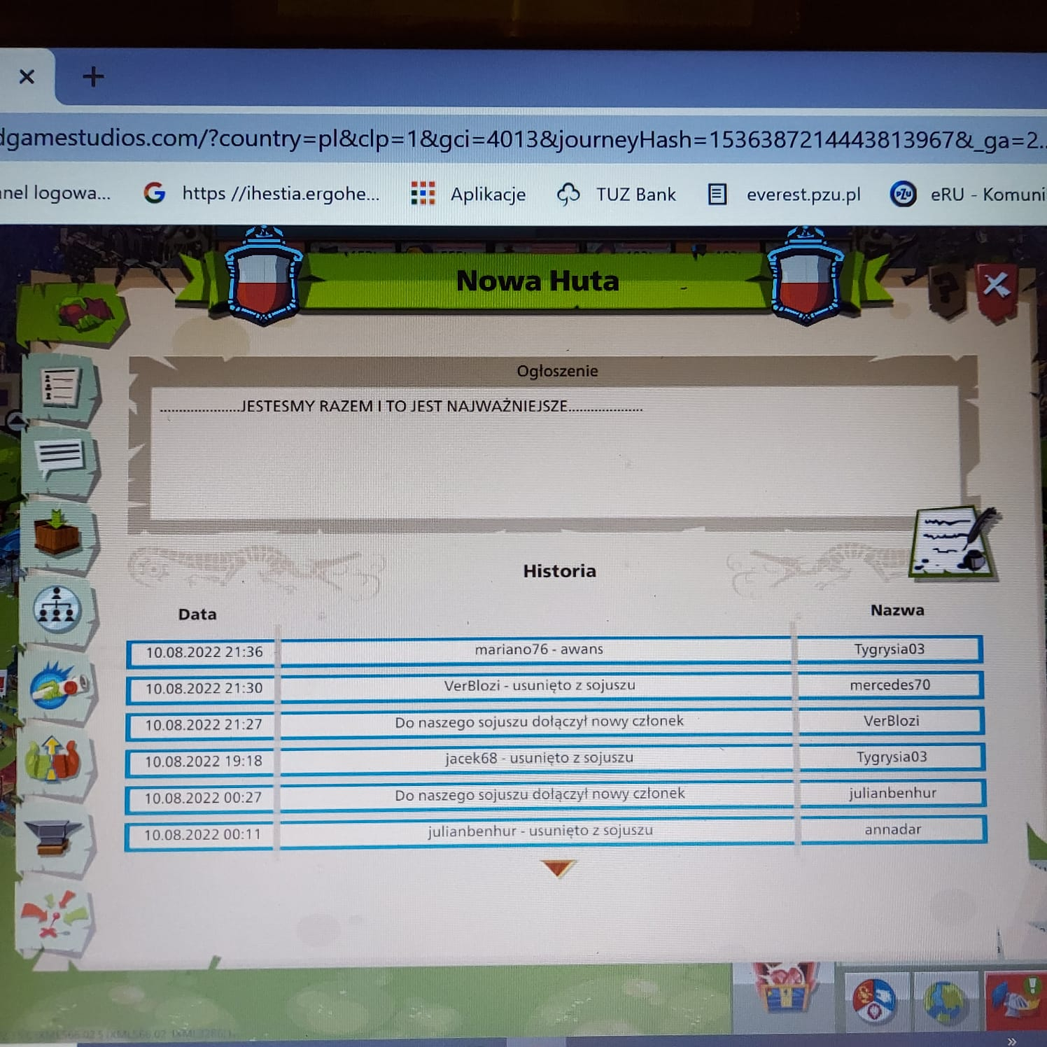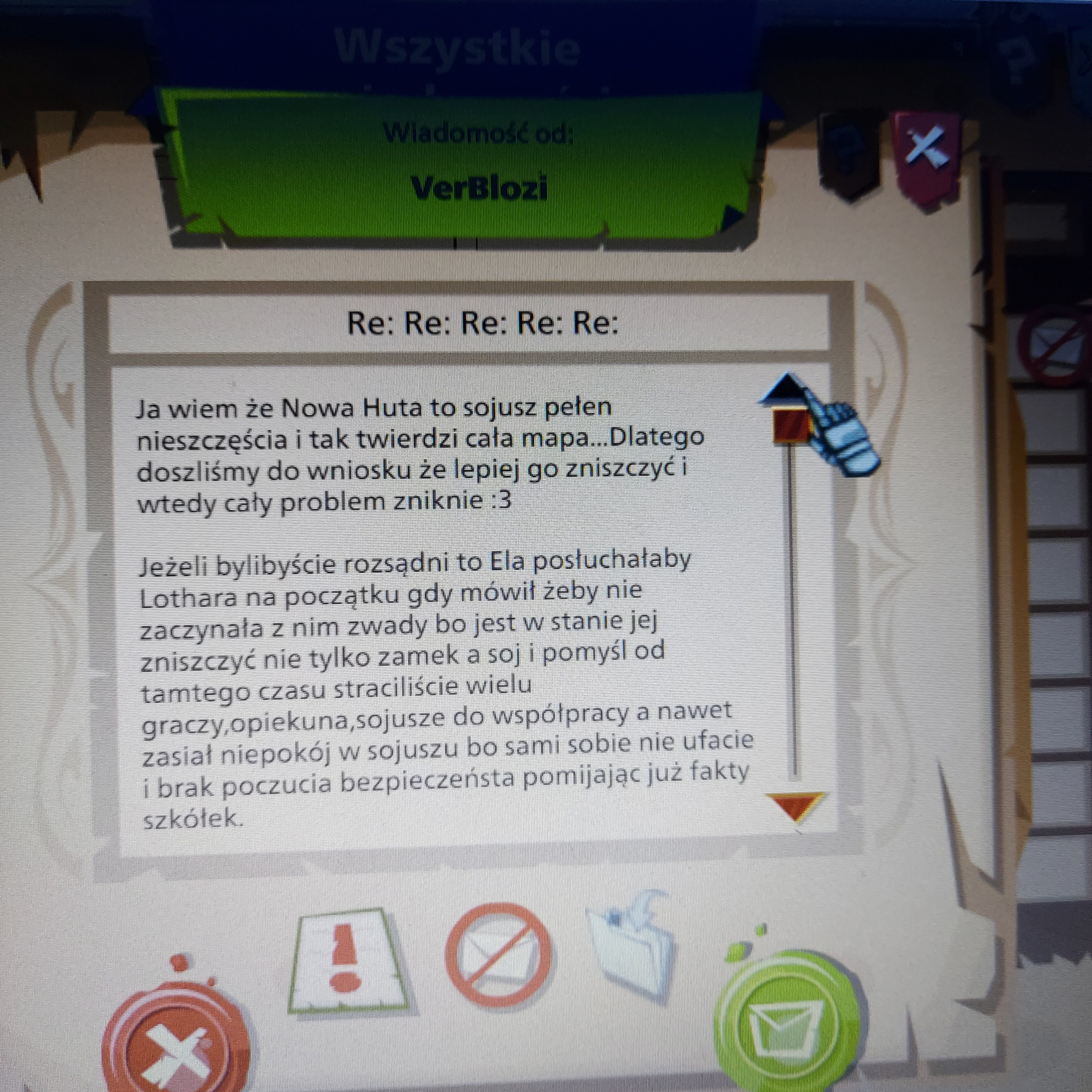 co powiesz na czyny swojego kolegi ?biggVv (PL1) powiedział(a):To Jak to jest pomagaliście Eli a teraz Ją i Nową Hutę chcecie zniszczyć w każdy możliwy sposób i w ten nie możliwy też.Weźcie na wstrzymanie z używkami bo Sami -siebie kompromitujecie.MAcie poczucie wyższości bo Support Wam sprzyja bo bez tego szantaże by Wam nie wychodziły - Na co komu w grze GGE tacy gracze którzy nie przestrzegają zasad i wykurzają z mapy graczy po tym ta gra się wyludnia - a Support niech zobaczy ile kasy nie będzie bo Szkodników promuje.Błąd że tak można i błąd że to Wy z tego korzystacie zagrażając innym graczom.Ale i na to znajdzie się sposób.