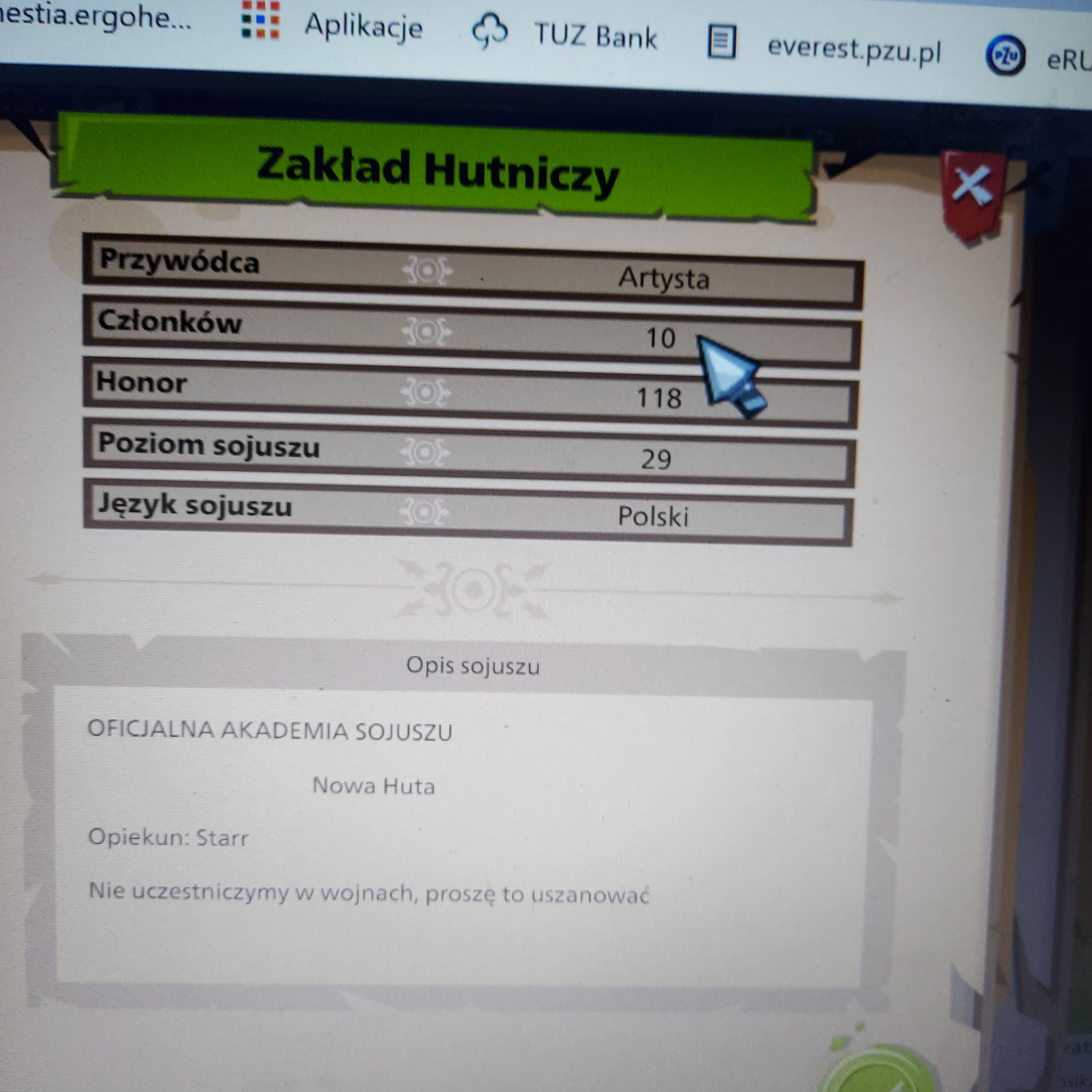 Wadzi Nam bo po pierwsze nie jesteśmy sojem opiekującym a gracz Starr nie zgodził się reprezentować sojusz Zakład Hutniczy --to jest śmieszne?!
