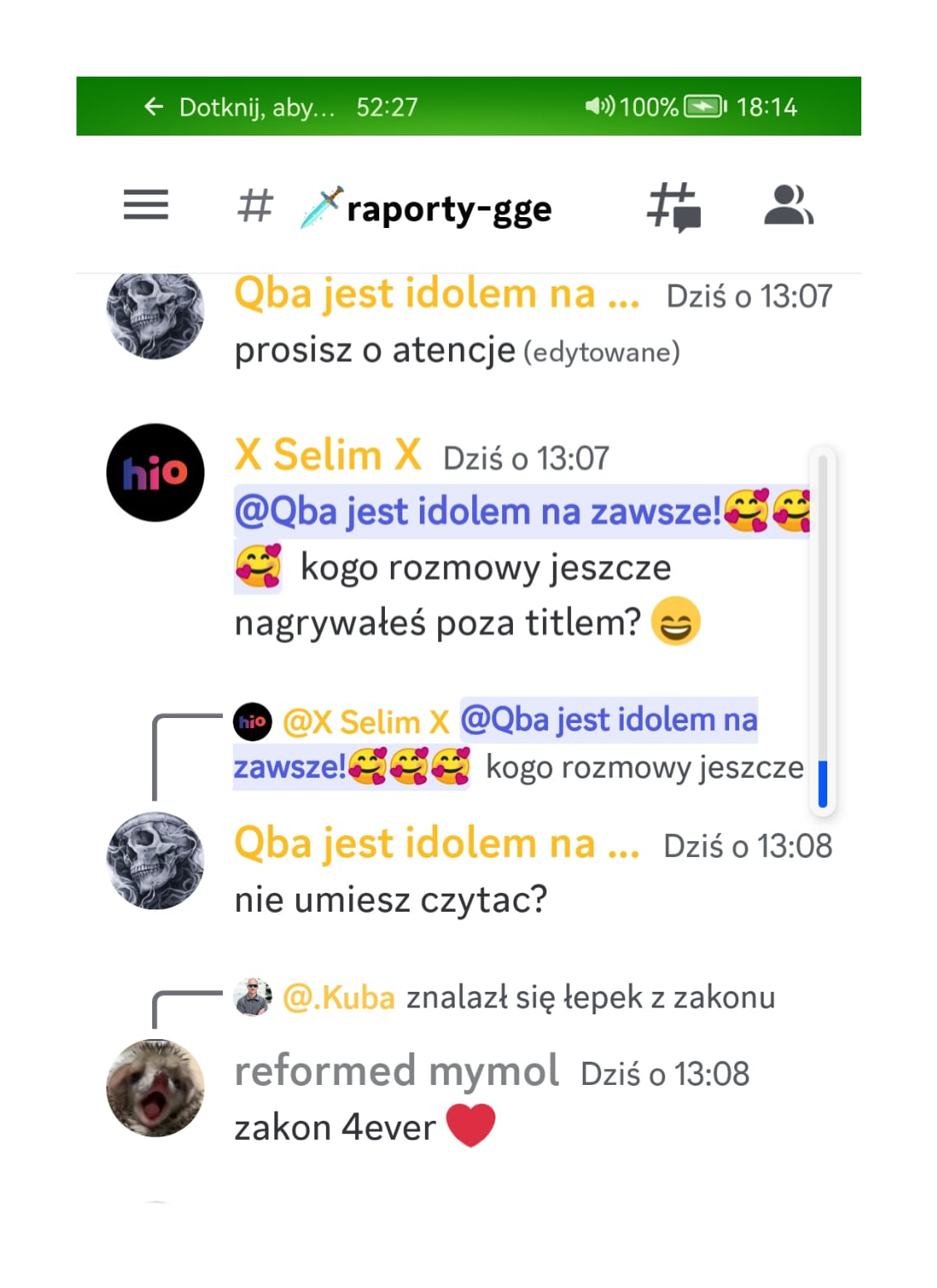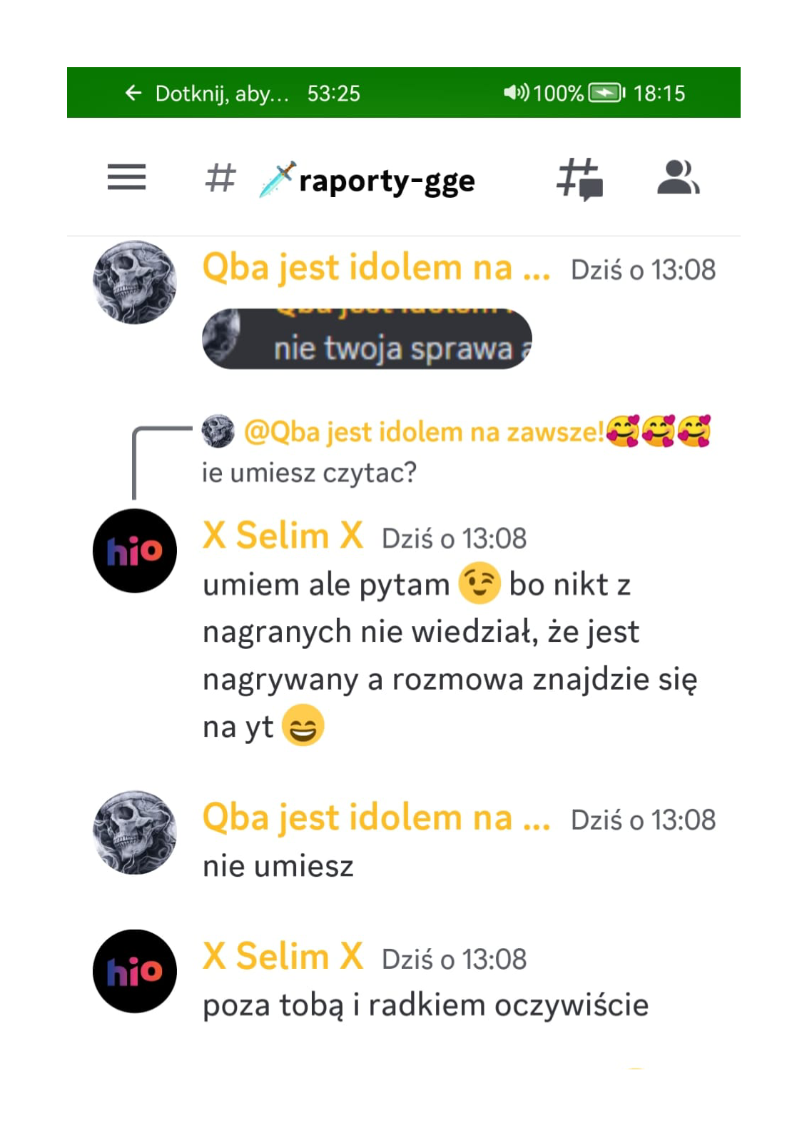 Słuchajcie Drodzy gracze na discordzie szybko się przewija a tu zostanie na dłużej ---UWAŻAJCIE CO DO KOGO MÓWICIE XSELIMX I JEGO WYZNAWCY I POMAGIERZY NAGRYWAJĄ LUDZI NAWET ICH NIE INFORMUJĄC I POTEM SZANTAŻUJĄ I NAKAZUJĄ ABY ROBILI RZECZY NAWET JAK SIĘ Z TYM NIE ZGADZAJA.
