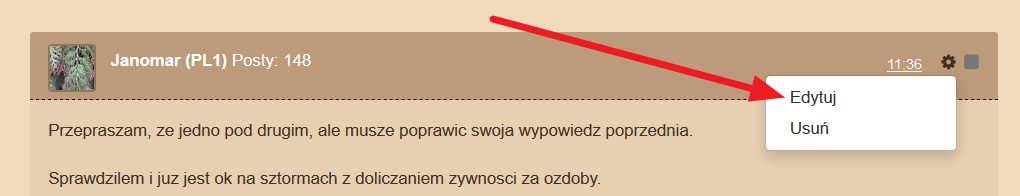Ty samym, własny wpis w określonym czasie 2godzin od jego publikacji, można edytować. Inaczej, zespół forum może przydzielić punkty karne za spam. Netykieta forum od lat znów mówi, że nie dokonujemy wpisu pod własnym wpisem częściej niż raz na 24h. W szczególnych wypadkach (brak reakcji na problem ze strony zespołu forum), odstępujemy od działań prewencyjnych.
