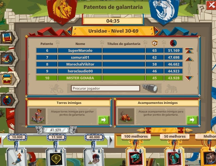 Pessoal, eu cansei de atacar em BERIMOND para, com muito custo, conseguir ficar entre os 10 no ranking entre os níveis 30-69.