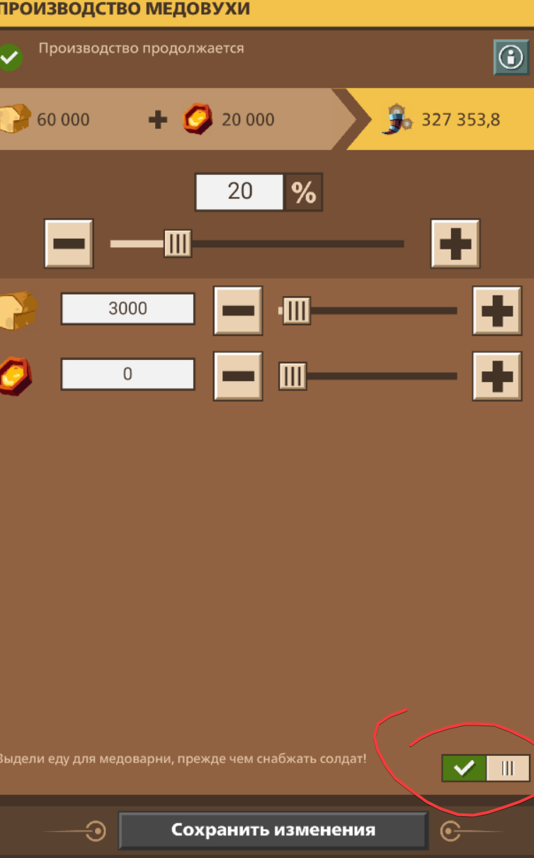 во вторых, у вас выключилась медоварня, потому что не стояла вот эта галочка. Если эта галочка ВЫключена, то медоварня может сама выключится, чтобы спасти едовых юнитов