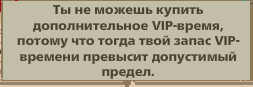 У вас достигнут максимальный лимит действия вип-режима, покупка дополнительного времени не возможна, даже за рубины. Проверить можно на Королевском рынке.