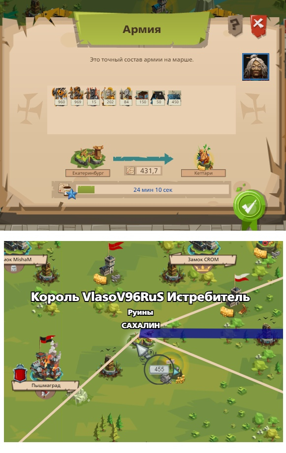 Если атаковать замок в рамках события "Хранитель природы", который до момента вывода войск был замком, а к моменту прибытия стал руинами, то получается вот такая история.