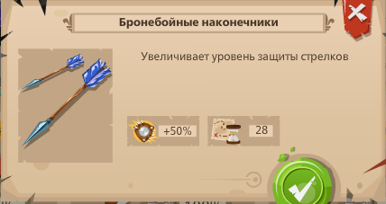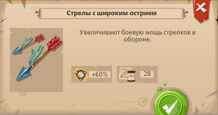 4. Стрела с широким острием - оборонительное орудие, увеличивает силу юнитов дальнего боя на 60%
