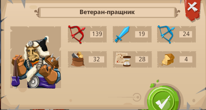Ветеран-пращник 10штук за 45 пайзц. дорогое удовольствие. Солдат дают и так много, что аж прокормить невозможно. Не советую покупать