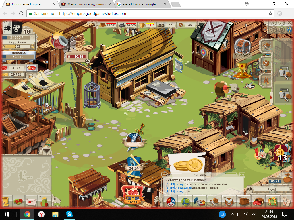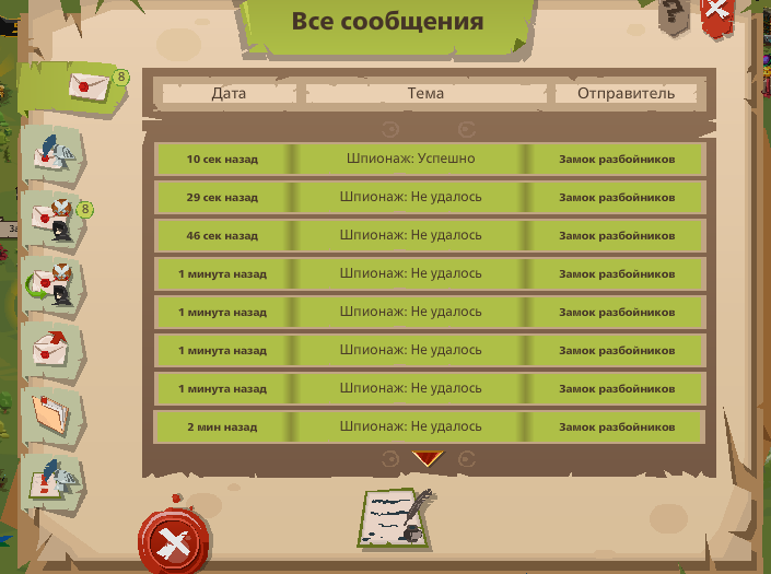 а теперь более важная тема: никогда нельзя защититься на 100%... это как то стремно.... поставь ты хоть 25 караулок 100 уровня, всё равно тебя смогут прошпионить с шансом 5%. может быть это стоит исправить? а то обидно как-то.