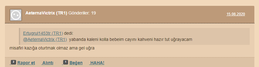 Ceki dedi:Şimdiye kadar forumda hiç bir zaman taraf tutmadım ve ya gereksiz yere ban atmadım.Forumda yapılan en ufak hakarete göre uyarı yapmak zorundayım.Eğer gözümden kaçan küfürlü yorumlar varsa beni etiketleyerek bildire bilirsiniz.Yalnız bu şekilde forumu daha güzel bir yer haline getire biliriz ve oyuncular arasında sağlam,temiz ve küfürsüz rekabet yarata biliriz.BalBöceğim (TR1) dedi:son zamanlardaki küfür dahi etmemiş insanların, forumda ana avrat söven insanlar yerine toplu olarak banlanmalarının sebebi nedir? @Ceki