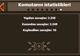 İlk komutanım ile yapılan savaş 4253 kazanılan savaş sayısı 4177 kaybedilen 76 tam bir savaşcı istatistiği