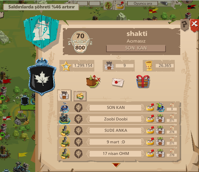 Seni tanıyanlar başarılarının tesadüf olmadığını bilirlerİlk Güneş armasıİlk 6. dalgaİlk max seviye Baronilk Metro 5. seviye ticaret merkezi .......Bu kadar başarıya imza atmış bir oyuncuyu takdir etmemek büyük ayıp olurduAyrıca Son Kan bu sunucuda demokrasi ile yönetilen tek ittifaktır