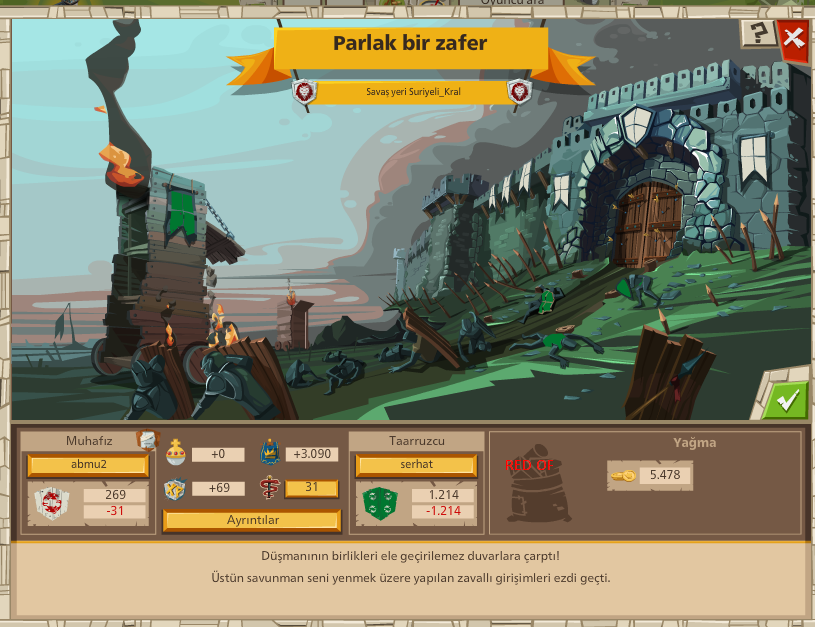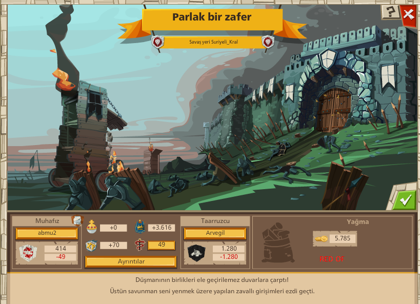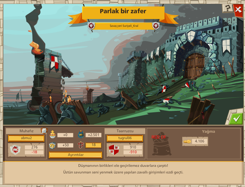 Alt üst kölelik sisteminin bir ferdi olan şahsiyet ,adamlığı savunma yapmaya indirgemiş.ozaman sende yagma kaleni savun 6 dalga asker yollamıyorum standart aletsiz 32 kurt geliyor.Al yagma raporuda atayım madem cok istedin.