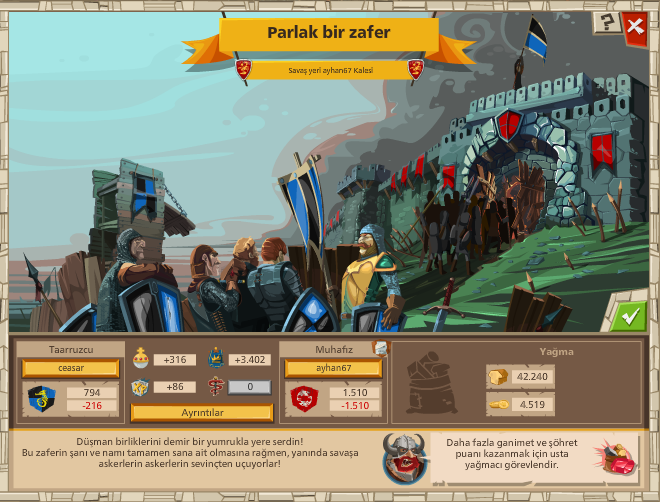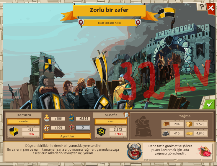 yok son kana kimse bisey diyemez cunki raporlar ortada adamlar oyun oynuyo kesiyolar savasda olmadigi ittifak yok haklarini yemek olmaz kaleleride teknola acidan cok gelismis yanmasina bakmayin 600 m mesafeye 2 dk isti gidiyo yanmayan kaleyi ilk yapan onlar ve s o yuzden son kani hafife alinmaz son bisey daha kale bi tek bina gelisim ekipman gelisimi ile olmuyo her turlu olmasi gerek hem komutan bina hemde teknolaj acisindan arkadaslarda oyle yapiyo bide her ittifakla savasda olmalarina ramen tum etkinlikler ittifak odulleri bitiyo dogruya dogru adamlar oyunda iyiler