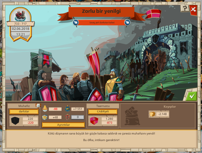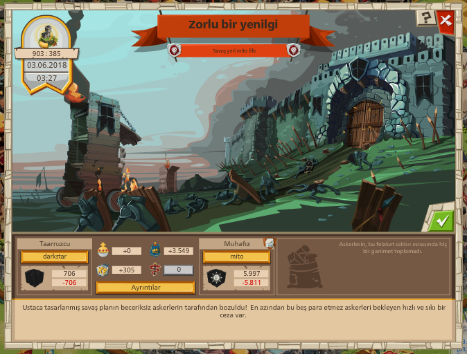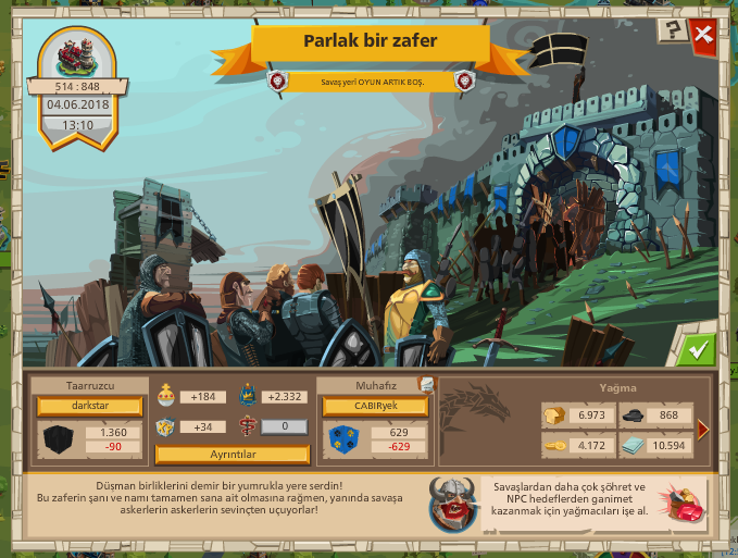 @CABIRyek (TR1) bu başlık altında tartışma çıkarma amaçlı diyaloğa girmeyelim.başlık sadece ilgili ittifakın savaş raporlarının paylaşımı içindir.karşı raporlarını başka başlık açarak orada paylaşabilirsin