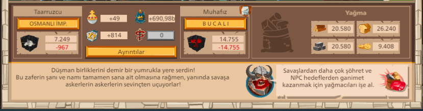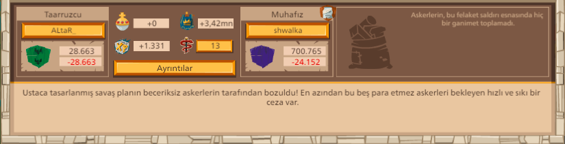 Kaç yıllık oyuncuyum saymadım ama oyun hakikaten bayâ değişmiş. Bizim zamânımızda en kalabalık ordu 6k falandı adamlar minimum 5k, 10k, 30k gönderiyor. Vay be... Eskisi gibi büyük savaşlar oldu mu diye bakmaya geldim ama o eskisi gibi T.E.A.M. koalisyonu Son Of War direnişi, Dark Of Soul'sun hep tarafsız kalışı ~ İlkcan ~'ın bir gecede ansızın imha edilmesi, Gaddar'ın tek lokmada hiç edilmesi vs. vs. herhalde artık oyunda full barış var millet etkinlik kasıyor. Neyse, o görkemli savaşlar aksiyonlar falan göremedim. En son 2 yıl önce bakmıştım oyuna hâlâ ittifak sıralamasında aynı ittifaklar var. Düşünsene o zamânlarda bu tarz raporlar olsa deli dehşet millet kafayı yerdi. Her şey sıradan ve normal olmuş. Tebrikler raporlar için ve kaosunuz bol olsun.