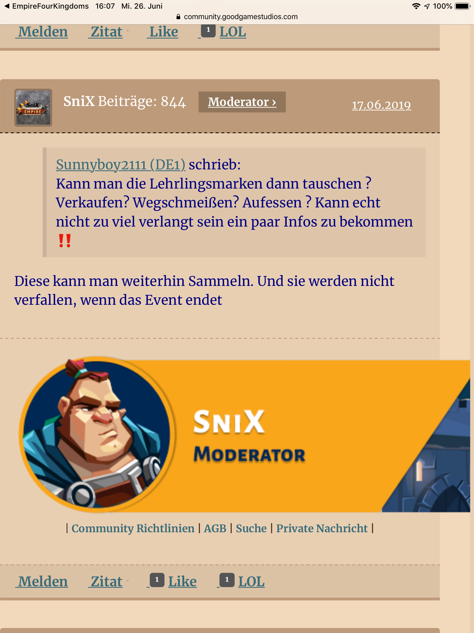 Laut Aussage vor paar Tagen soll man die Marken. Behalten können fürs nächste Event