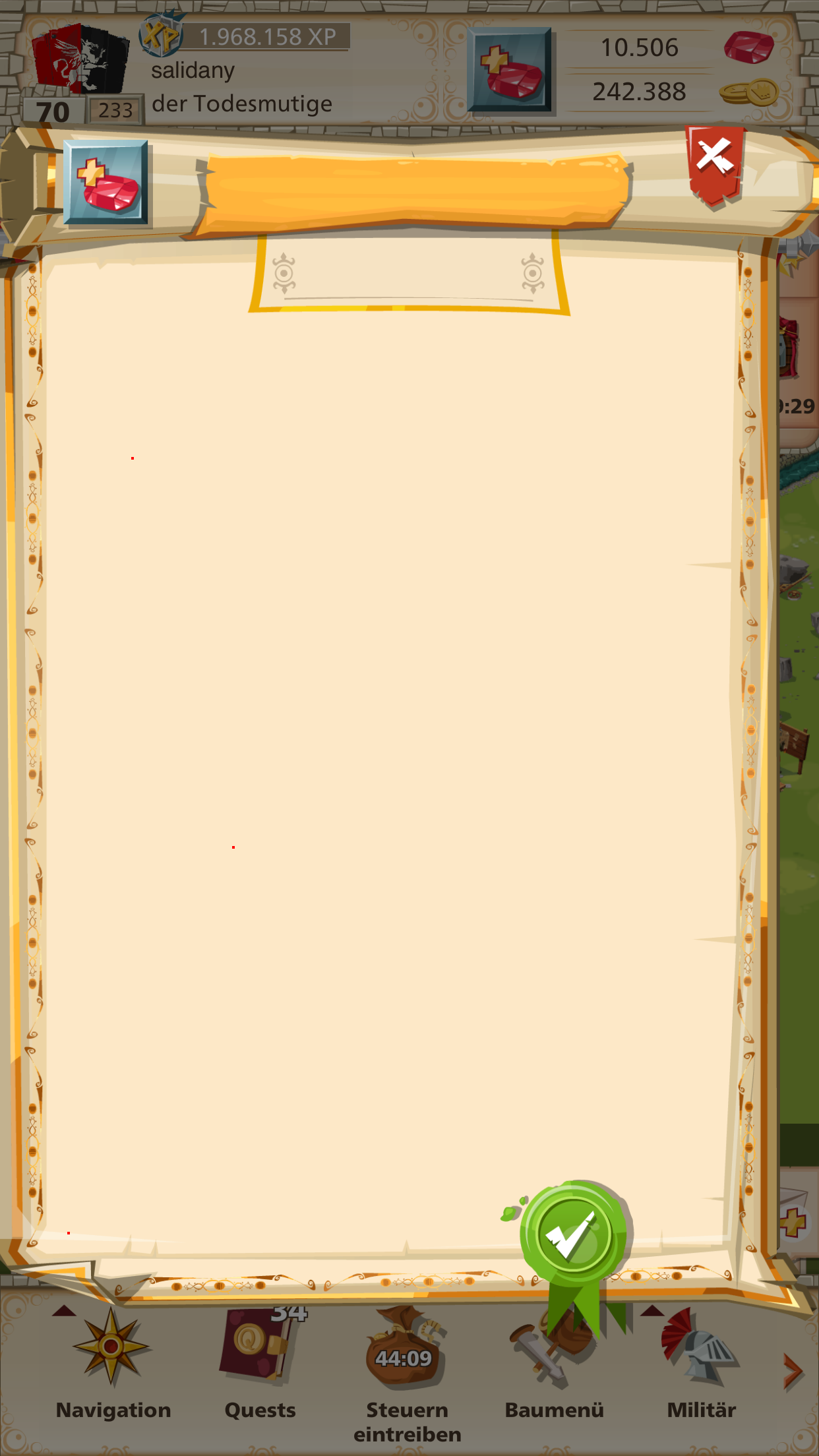 das Angebot, welches du auf dem Screenshot offenkundig nicht sehen konntest, hat sich aufgehängt und somit auch der Dialog. Das Spiel war so natürlich nicht mehr spielbar, da man nichts mehr machen/klicken konnte. Daher wurde dieses Angebot von uns deaktiviert. Nach einem Neustart der App sollte alles wieder normal funktionieren.