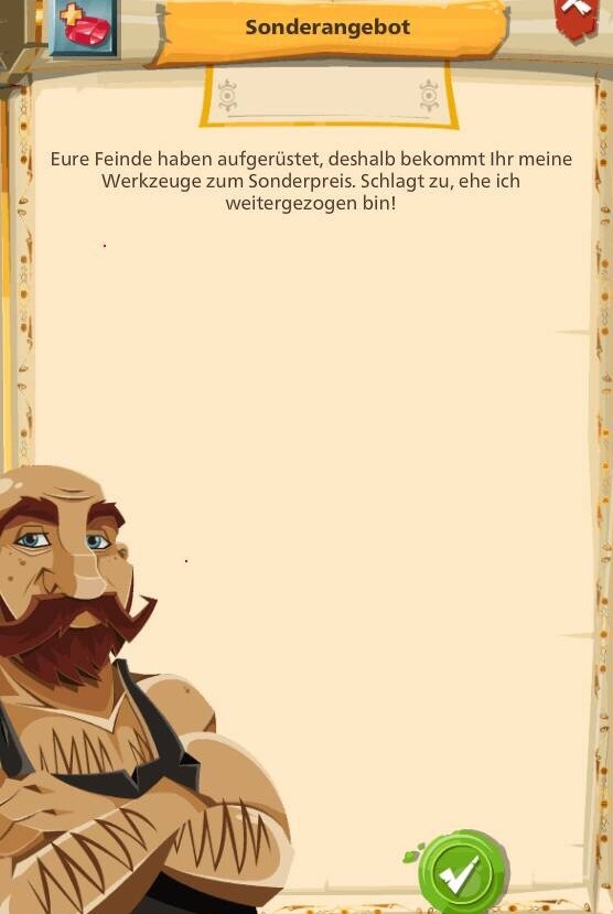 das Angebot, welches du auf dem Screenshot offenkundig nicht sehen konntest, hat sich aufgehängt und somit auch der Dialog. Das Spiel war so natürlich nicht mehr spielbar, da man nichts mehr machen/klicken konnte. Daher wurde dieses Angebot von uns deaktiviert. Nach einem Neustart der App sollte alles wieder normal funktionieren.
