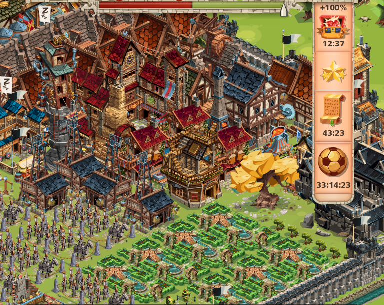 Da nun über Nacht das Icon für die Übersicht aller Angebote (Plus-Symbol) hinzu gekommen ist, sieht man von seiner Burg recht wenig.