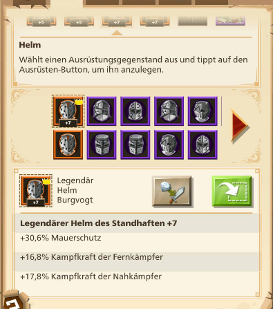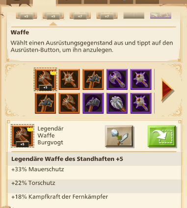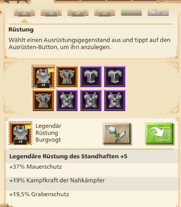 Nach dem vorletzten Update wurde die Kampfkräfte und Werte Mauer usw. verbessert (nur bei den normalen Ausrüstungen die jeder findet) bei den einzigartigen Ausrüstungen sind die Werte nicht verändert.